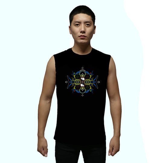 Vous obtenez un t-shirt imprimé à l'avant et à l'arrière avec la marque Ultra Tribe à l'arrière du cou. C'est un t-shirt de coupe régulière avec des manches coupées et un col rond.