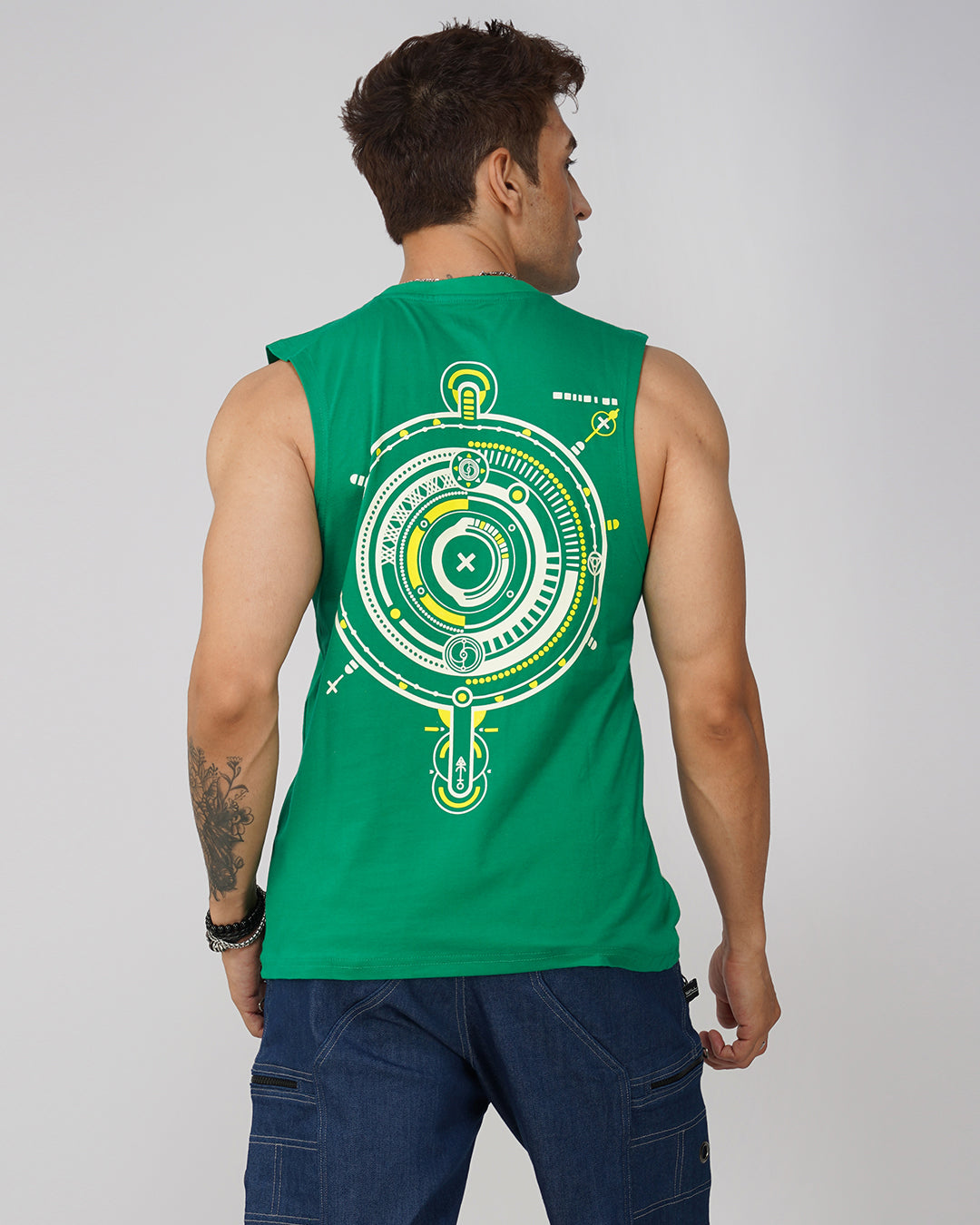 This oversized cotton t-shirt is made with 100% premium quality fabric and features a round neck, half sleeves, and a long fit. The hand-made silk screen print on the base color Sea Green is the main trend, creating a UV light reactive effect. This t-shirt is perfect for both casual and party occasions and can be easily washed in a machine with cold water. For the perfect fit, refer to our size chart.
