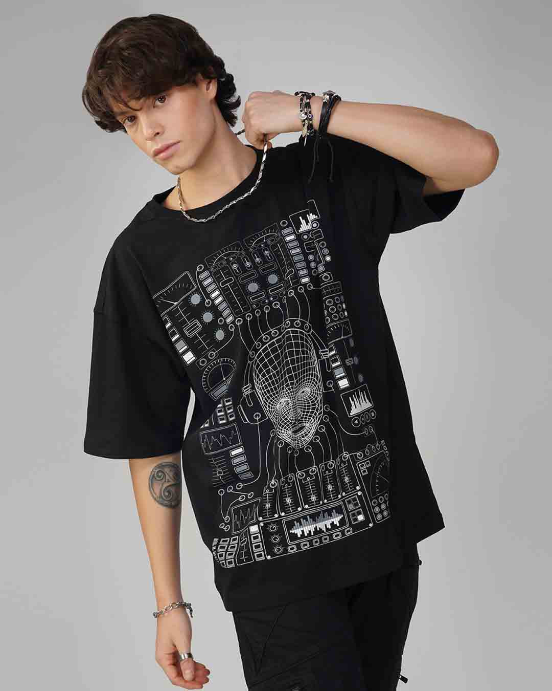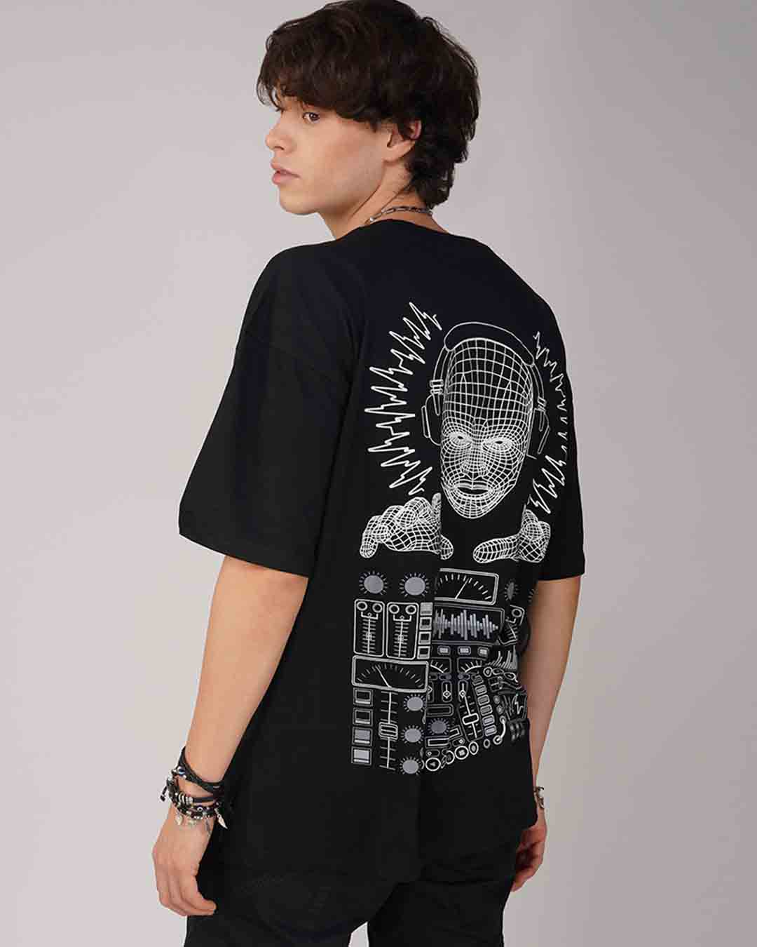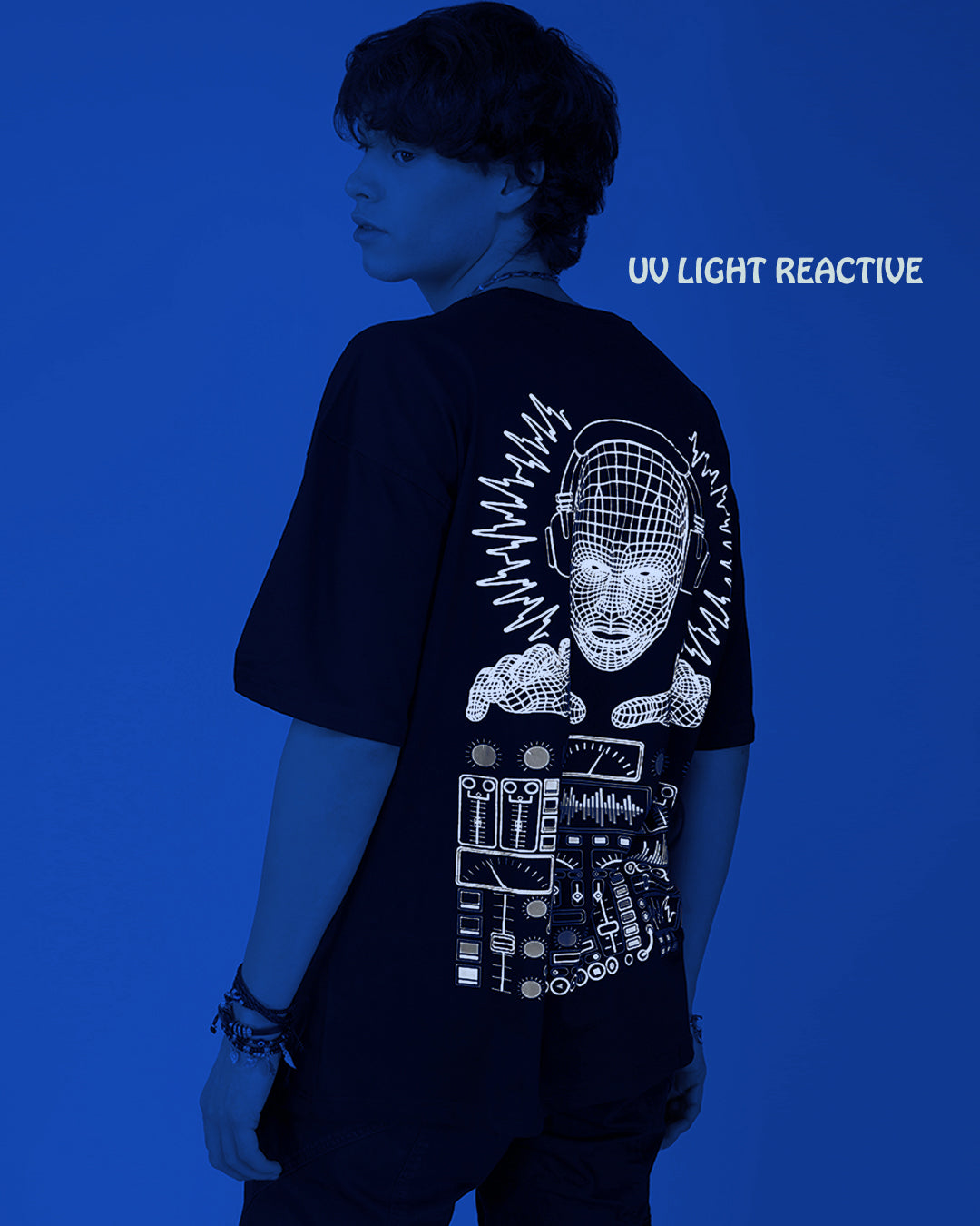 This oversized cotton t-shirt is made with 100% premium quality fabric and features a round neck, half sleeves, and a long fit. The hand-made silk screen print on the base color black is the main trend, creating a UV light reactive effect. This t-shirt is perfect for both casual and party occasions and can be easily washed in a machine with cold water. For the perfect fit, refer to our size chart.